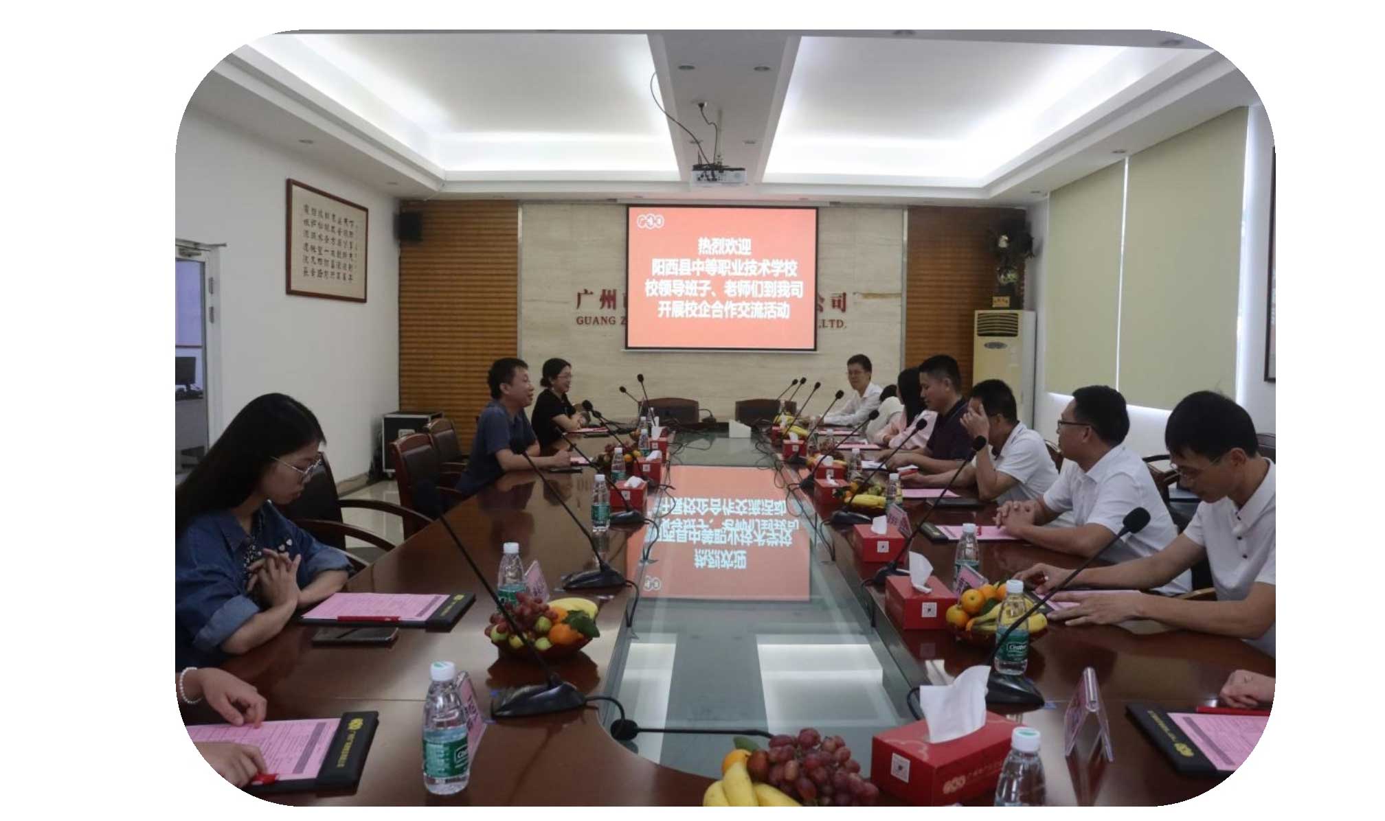 金秋氣爽,丹桂飄香, 2023年10月20日下午,陽(yáng)西縣中等職業(yè)技術(shù)學(xué)校盧先養(yǎng)校長(zhǎng)、林進(jìn)毅主任、馮章嘯主任、黃幸民主任、楊雅靜團(tuán)委副書(shū)記、申定衛(wèi)主任、黃目瑞工會(huì)副主席、周惠健老師、陳錦恒老師、謝美嬋老師、關(guān)凱元老師等學(xué)校領(lǐng)導(dǎo)、老師們一行到我司開(kāi)展校企合作交流。公司許業(yè)裕總經(jīng)理、人力資源部施華經(jīng)理出席活動(dòng)。雙方就繼續(xù)加強(qiáng)合作,提高學(xué)生職業(yè)技能,以及如何推動(dòng)學(xué)生校外實(shí)習(xí)和社會(huì)實(shí)踐活動(dòng),創(chuàng)建校企合作新模式等方面進(jìn)行了廣泛的交流和研討。