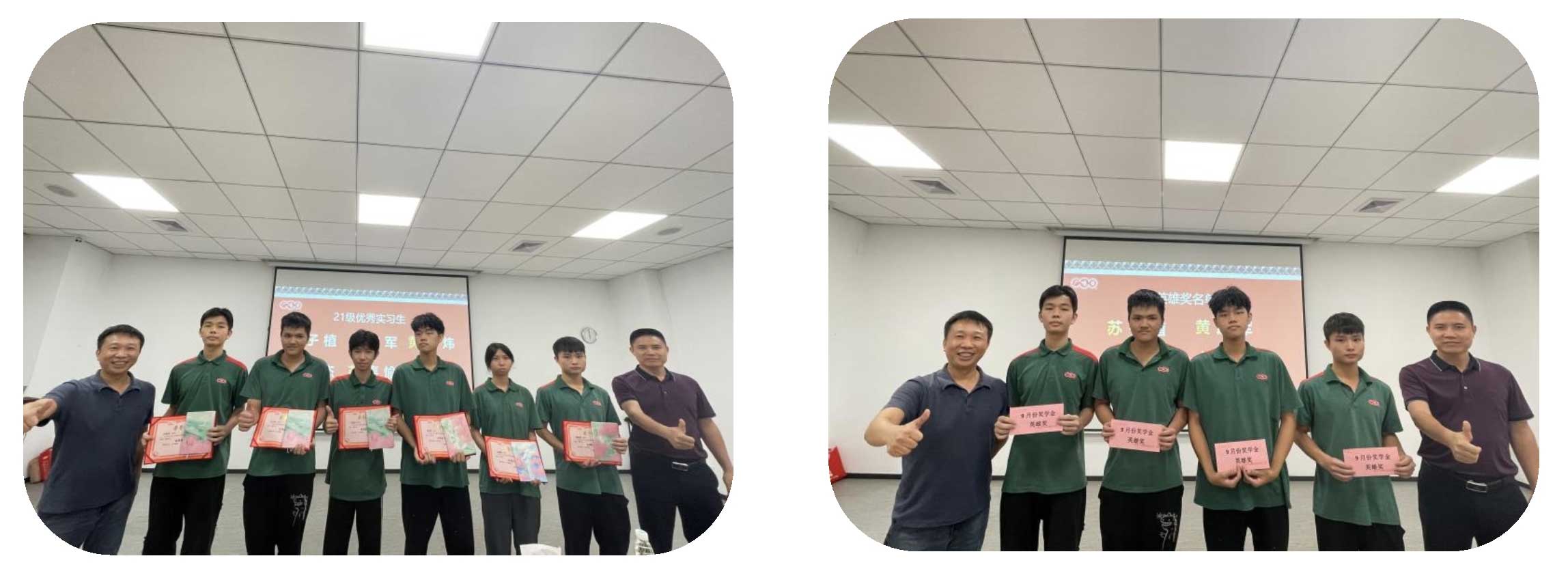 參觀期間,盧校一行共同參加了21級(jí)陽(yáng)西實(shí)習(xí)生獎(jiǎng)學(xué)金頒獎(jiǎng)儀式,為同學(xué)們頒發(fā)了9月份獎(jiǎng)學(xué)金、榮譽(yù)證書(shū)、紀(jì)念品。