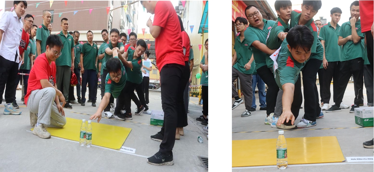 第五個(gè)項(xiàng)目:摸石頭過(guò)河。每名隊(duì)員手拿三塊磚頭過(guò)河,6名隊(duì)員接力完成,每人走10米。這個(gè)項(xiàng)目手腳的協(xié)調(diào)性要求很高,有些隊(duì)員為了不犯規(guī)加時(shí),用最簡(jiǎn)單的辦法三塊磚前后移動(dòng),也是一個(gè)非常棒的辦法,本項(xiàng)目在有條不紊的比賽中充分體現(xiàn)了廣味源人務(wù)實(shí)篤行,行穩(wěn)致遠(yuǎn)的合作態(tài)度。
