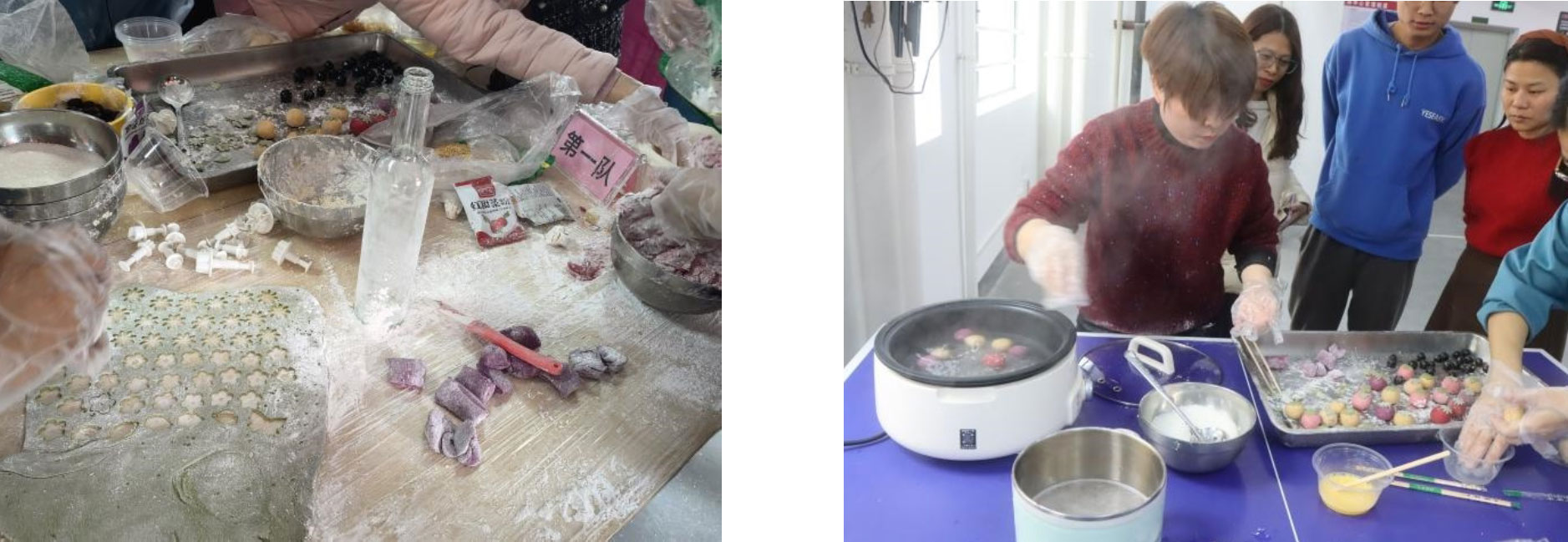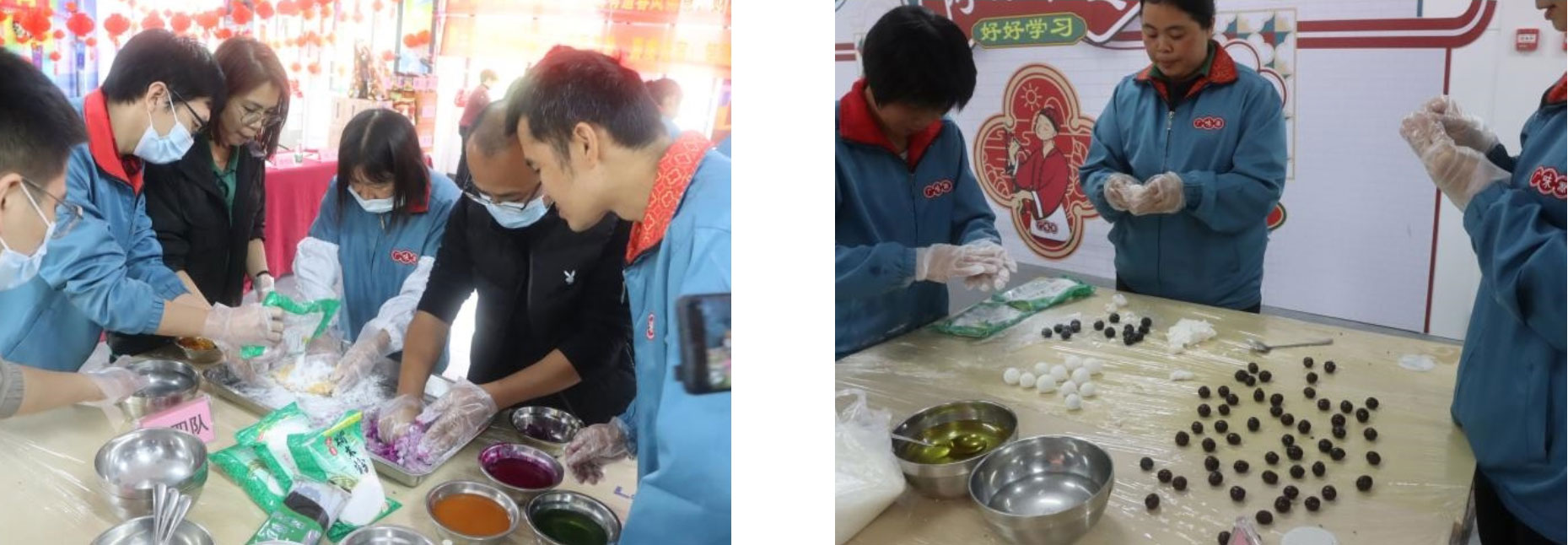 隨后主持人介紹出席活動(dòng)的評委及詳細(xì)介活動(dòng)的規(guī)則。接著各小組成員迫不及待想地投入到熱烈的DIY湯圓制作比賽中,每個(gè)參賽小組成員都各司其職,有的煮開水,有的搓粉,有的倒水,有的搓餡料,有的煮湯圓,場面熱鬧非凡,隊(duì)員們忙得不亦樂乎,湯圓制作比賽不僅是一場比賽,更是一場團(tuán)聚和交流,隊(duì)員們在比賽的過程中,相互學(xué)習(xí)、分享經(jīng)驗(yàn)和技巧,其樂融融、笑聲不斷。