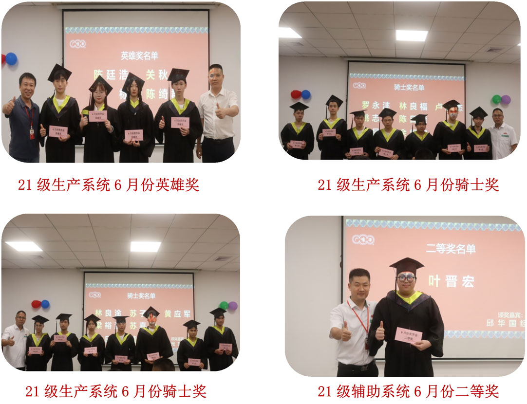 畢業(yè)典禮前廣味源許總經(jīng)理、生產(chǎn)部張光良經(jīng)理、品管部邱華國經(jīng)理為畢業(yè)生頒發(fā)了2021級畢業(yè)生實習(xí)階段最后一個月的獎學(xué)金,為同學(xué)們的跟崗實習(xí)劃上圓滿句號。