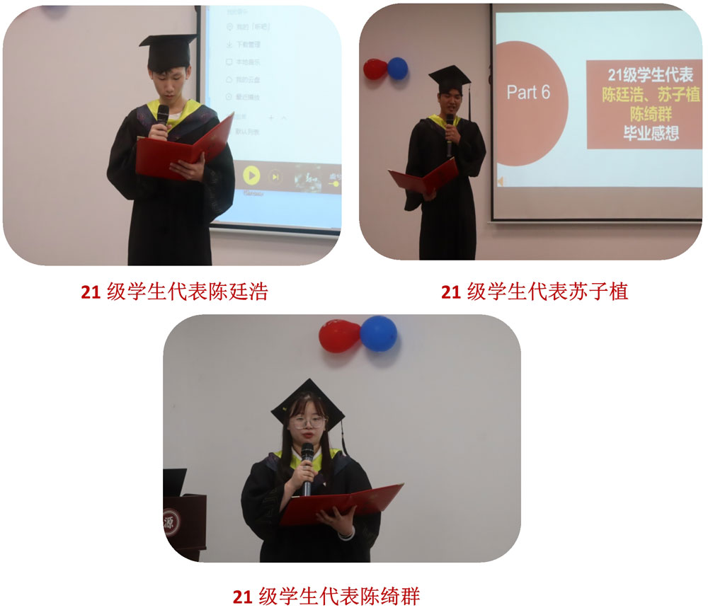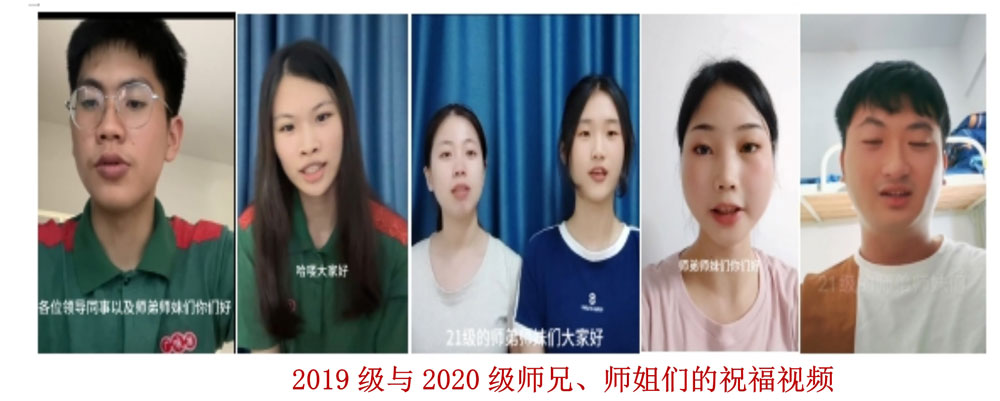 19級和20級的師兄、師姐們因工作未能到現(xiàn)場親自送上祝福,但他們給21級的畢業(yè)生錄了祝福視頻,每一個鏡頭都讓人感動!他們祝愿21級的畢業(yè)生們在工作中鍛煉自己各方面的能力,追逐快樂生活,成為更好的自己。