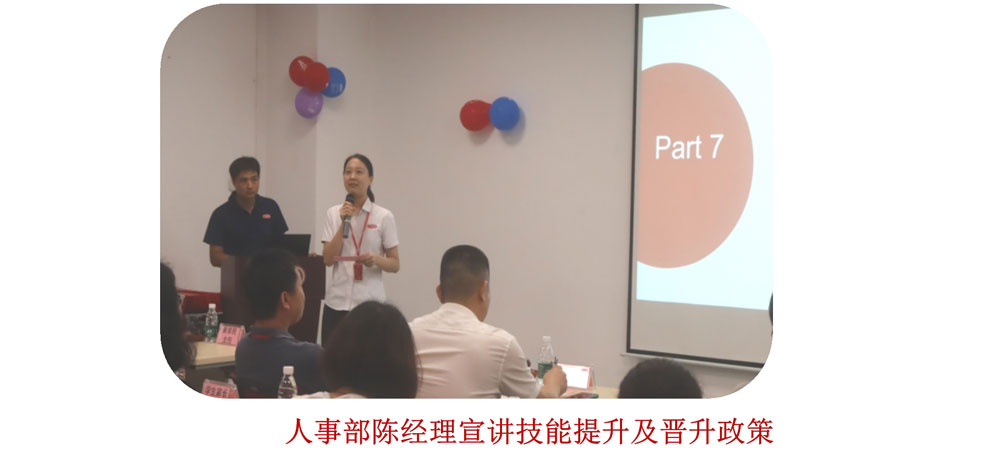 為了學(xué)生們有良好的未來規(guī)劃,人事部陳心月經(jīng)理精心策劃了一場技能提升及晉升政策的宣講,在宣講過程中陳經(jīng)理對19位畢業(yè)生送上了真誠的祝賀和期盼,相信陳經(jīng)理的精彩發(fā)言會讓各位畢業(yè)生有明確的目標和規(guī)劃!