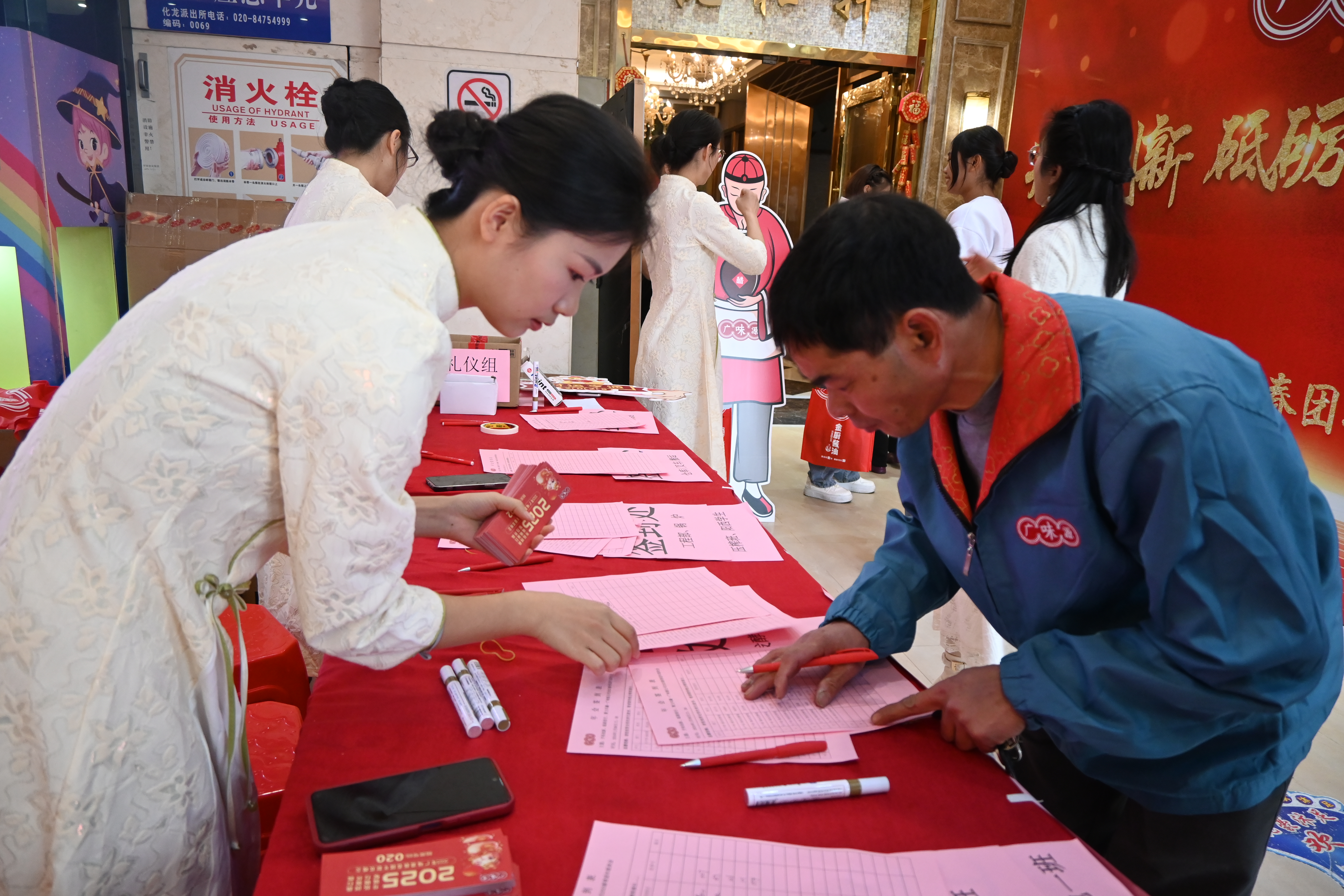 時間悄悄來到了17:00,年會就要正式開始了,員工們陸續(xù)到達會場簽到,領(lǐng)取新年小禮物和抽獎券。簽到后移步至簽名墻打卡、拍照留念。