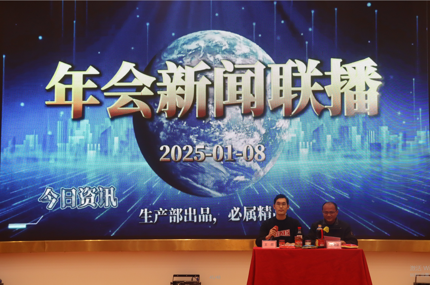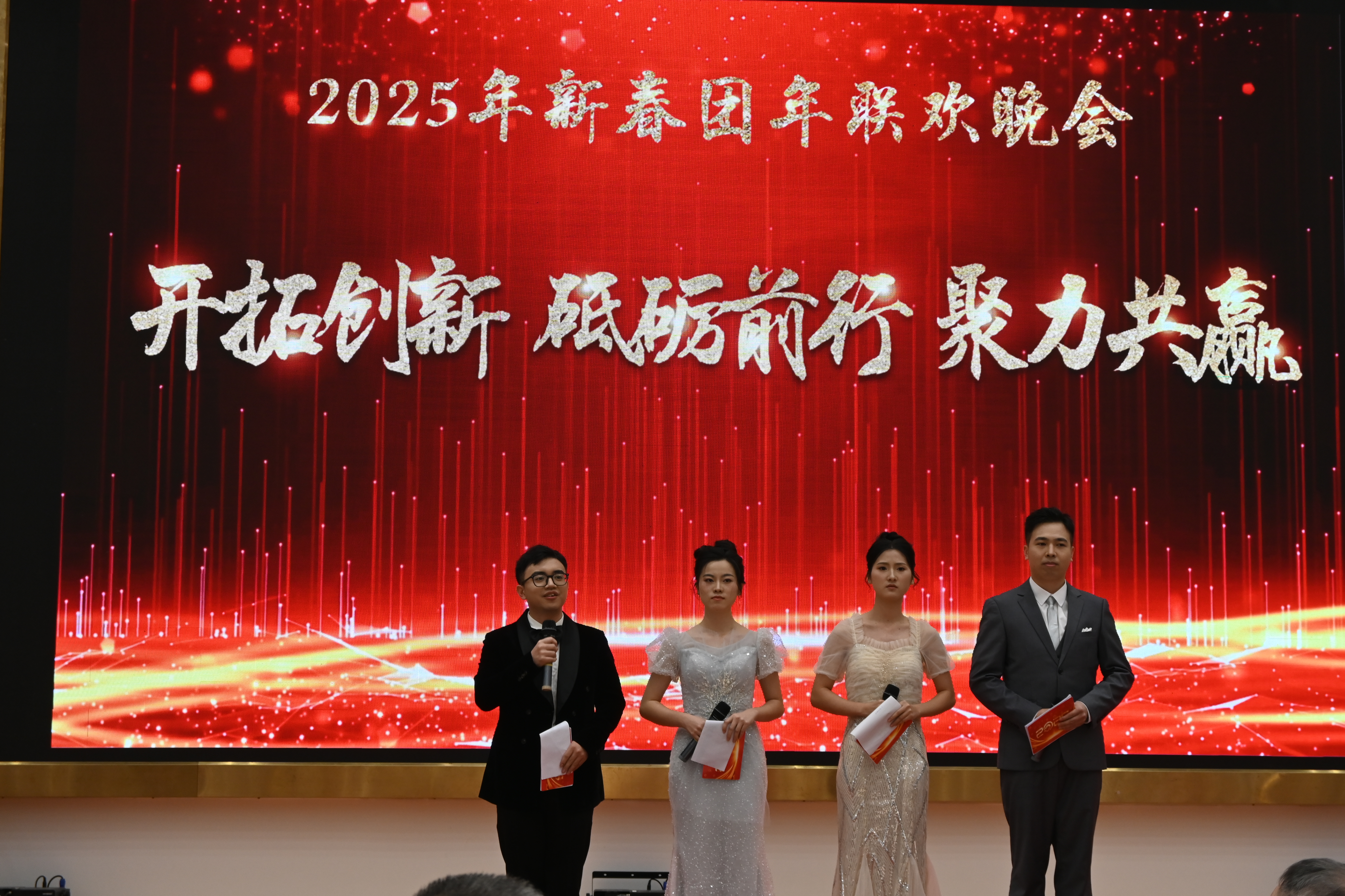 晚會序幕徐徐拉開,一輯快閃視頻帶著大家回首過去一年工作的點點滴滴,隨著主持人們的閃亮登場,年會正式開始。