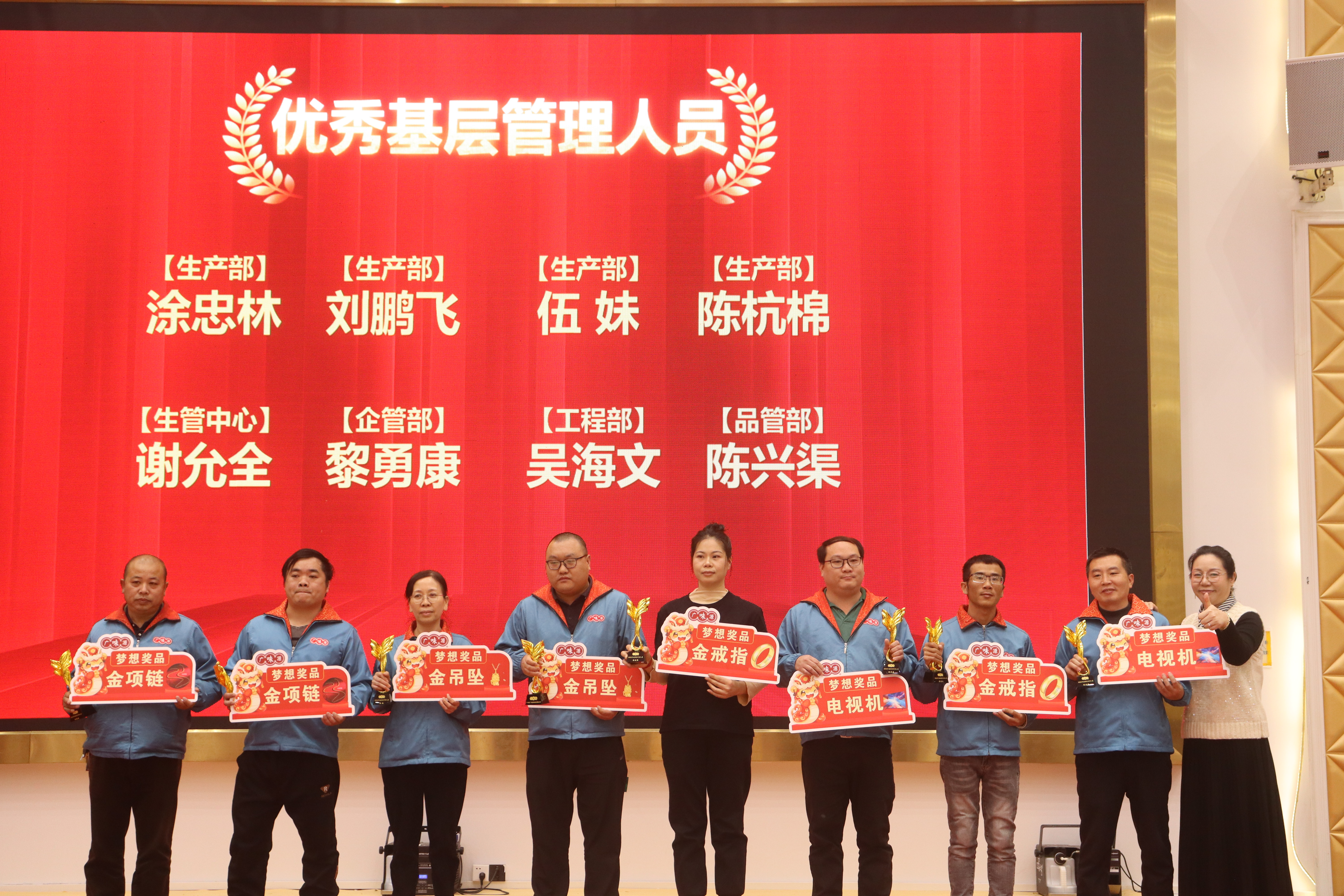 彭董事長、許總、曾總、王建華總監(jiān)、劉錦雄董事、肖國安總監(jiān)、丁從順總監(jiān)、冼潤強總監(jiān)、賈建周總監(jiān)上臺祝酒。大家共同祝福新年,祝愿廣味源在新的一年里宏圖大展,興旺發(fā)達!也祝愿大家在新的一年里家庭幸福,吉祥如意!