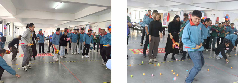 第三個游戲是《財運滾滾樂》:這是一項沒有任何挑戰(zhàn)難度的小游戲,獲得眾多同事的青睞,一眨眼功夫就排了一條長龍等玩游戲,大家都想試試運氣如何,有一名同事恰巧投到“吹爆氣球一個”,小伙子馬上展示如何吹爆氣球,贏得現(xiàn)場同事們的陣陣掌聲和喝彩聲,這小伙子,勇氣可嘉啊!